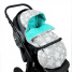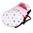Fusak má otvory pro pětibodové bezpečnostní pásy a opěrku hlavy, díky nimž spací vak nesjíždí z kočárku nebo autosedačky.