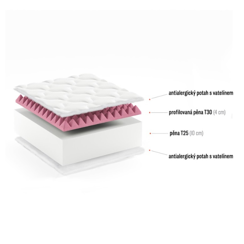 Velice oblíbená matrace. Profilovaná pěna T30 má masážní vlastnosti. Díky své nepravidelné struktuře masíruje svaly během spánku a zlepšuje krevní oběh. Doporučeno především lidem trpícím svalovým napětím nebo křečemi.