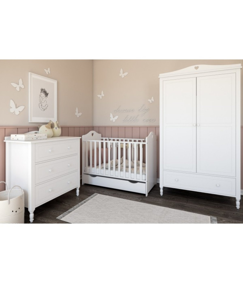 Postýlka 120/60 cm Beáta - bílá - 2v1 se šuplíkem