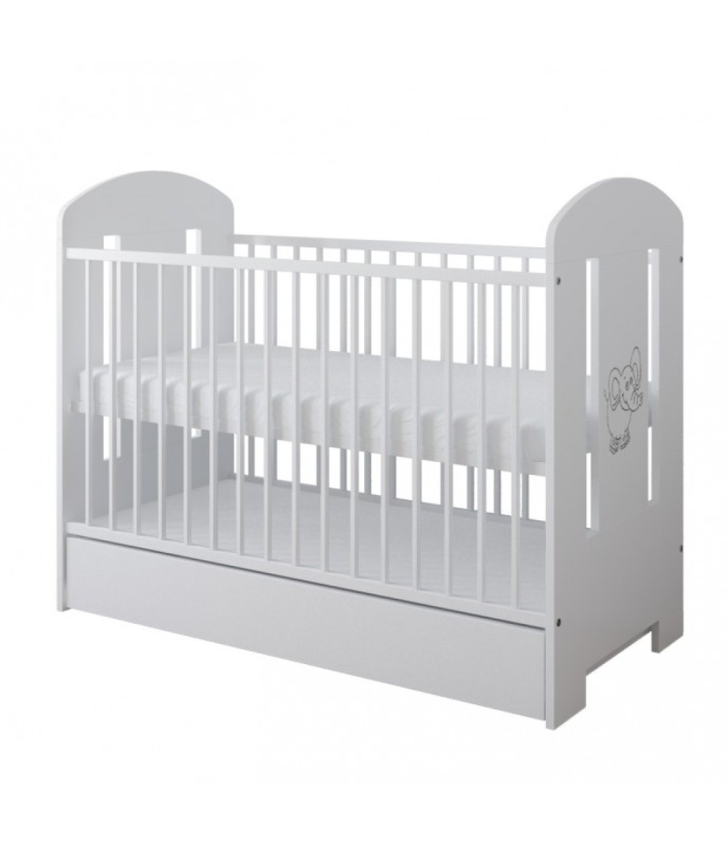 Postýlka 120/60 cm Gloria - bílá / Slon se šuplíkem