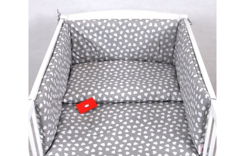 Souprava do postýlky 3 díly - šedá/bílé srdce