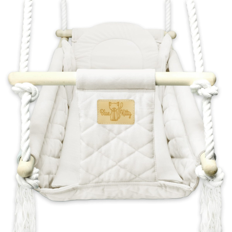 Houpačka je vyrobena ze silných, leštěných kulatin a odolných bavlněných linií. Sedák a vložka jsou vyrobeny z nejkvalitnějších tkanin.