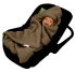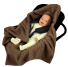 Součástí je praktická kapuce, která chrání hlavičku dítěte před chladem a větrem, a precizně umístěné otvory pro 5bodový bezpečnostní pás, umožňující snadné a bezpečné připoutání bez složité manipulace. Deka je univerzální – vhodná pro většinu autosedaček typu vajíčko, dětských nosítek a kočárků.
